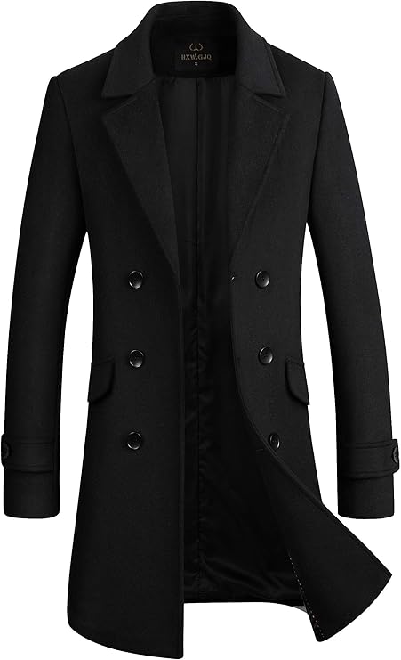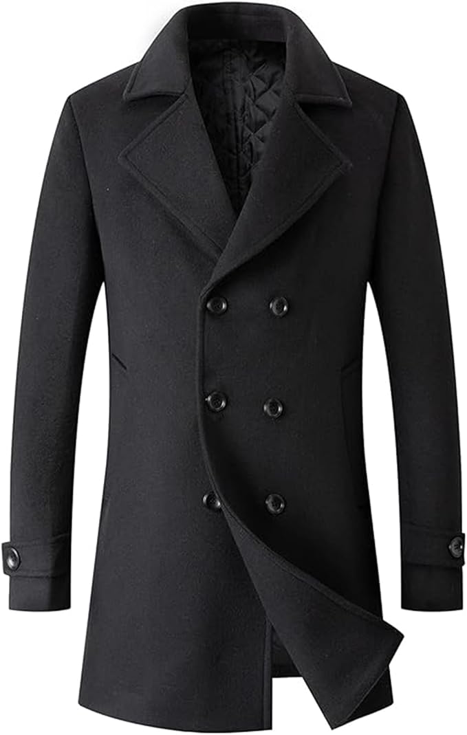 Men's Woolen Trench Coat Regular Fit Double Breasted Wool Blend Jacket Winter Pea Coat Businesss Overcoat