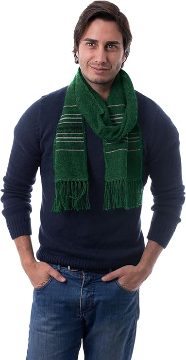 Artisan Handmade Men's Alpaca Blend Scarf Woven Striped in Green with Fringes Wool Accessories Scarves Multicolor Wrap Peru